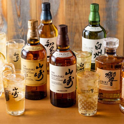 サントリーブランドがずらりと並ぶ豊富なお酒のメニューから...